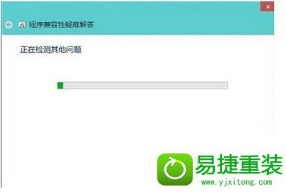 2.弹出程序兼容性疑难解答提示框,会显示正在检测问题,检测完后鼠标左键点击选择故障排除选项中“尝试建议的设置”。