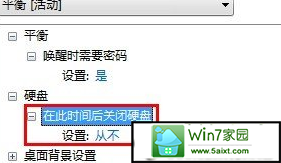 步骤二:在“更改高级电源设置”的窗口中,我们把右侧的滑动条往下拉,知道看到有一个“硬盘”的栏目,我们把该栏目下“在此时间后关闭硬盘”的设置更改为“从不”,然后确定保存。