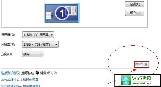 2.在弹出来的屏幕分辨率属性窗口中,咱们选择高级设置。