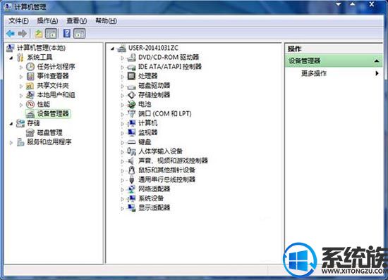 1、在win10系统桌面上,右键单击计算机图标,选择“管理”。在打开的系统窗口中,点击左侧窗格中的“设备管理器”。如图所示: