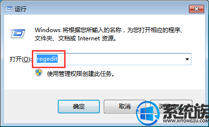 1、在桌面环境下,按下win+R调出运行窗口,并输入regedit命令,并确定执行;