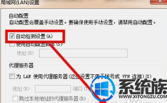 7、勾选【自动检测配置】然后点击确定,一直点击确定,这样保存了配置。关上iE,然后重启,问题就处理了。